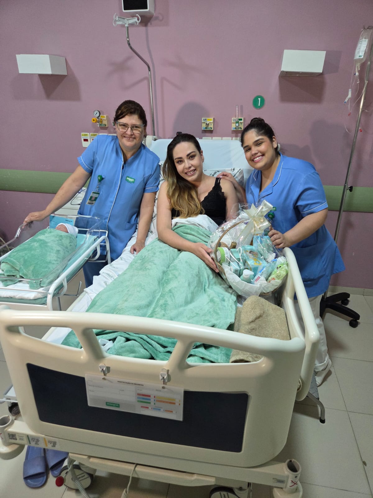 Como forma de homenagem, a Unimed Bauru presenteou a família com uma cesta da Farmácia Unimed, contendo produtos de higiene para os primeiros cuidados com o recém-nascido, gesto que emocionou ainda mais a mãe.
