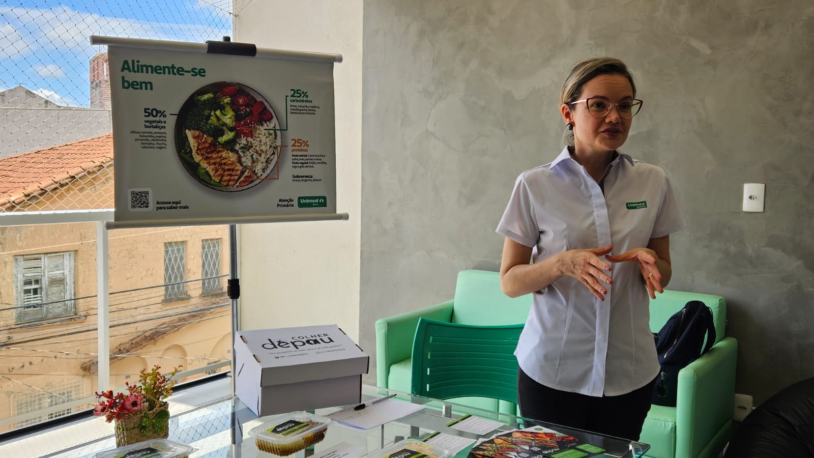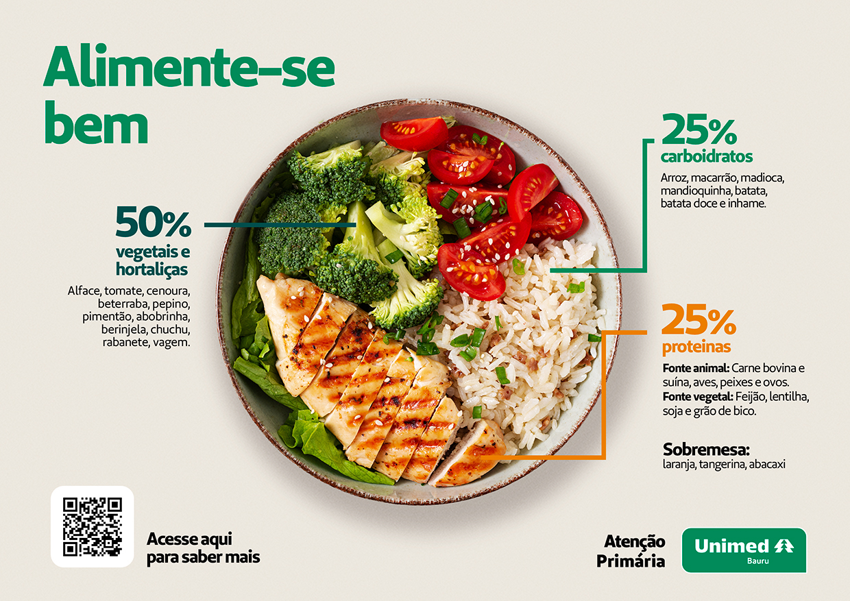 Além do conteúdo apresentado presencialmente, a Unimed Bauru desenvolveu um guia exclusivo destinado aos colaboradores e seus dependentes. O material reúne informações sobre escolhas alimentares, combinações equilibradas de refeições, preparo e armazenamento de alimentos, opções que podem ser congeladas e cuidados no descongelamento, com o objetivo de auxiliar no planejamento semanal de marmitas e reduzir o consumo de ultraprocessados e embutidos.
