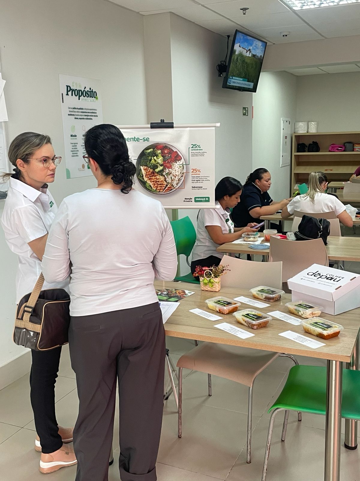 Nos dias 26 e 28 de janeiro, a Unimed Bauru realizou a ação “Alimente-se bem”, iniciativa da Atenção Personalizada à Saúde (APS) voltada à conscientização sobre a importância de uma alimentação equilibrada para a promoção do bem-estar e a prevenção de doenças. A atividade aconteceu das 11h às 13h, nos refeitórios da Sede Administrativa e do Centro de Diagnóstico Unimed (CDU), e reuniu colaboradores interessados em adotar hábitos mais saudáveis no dia a dia.