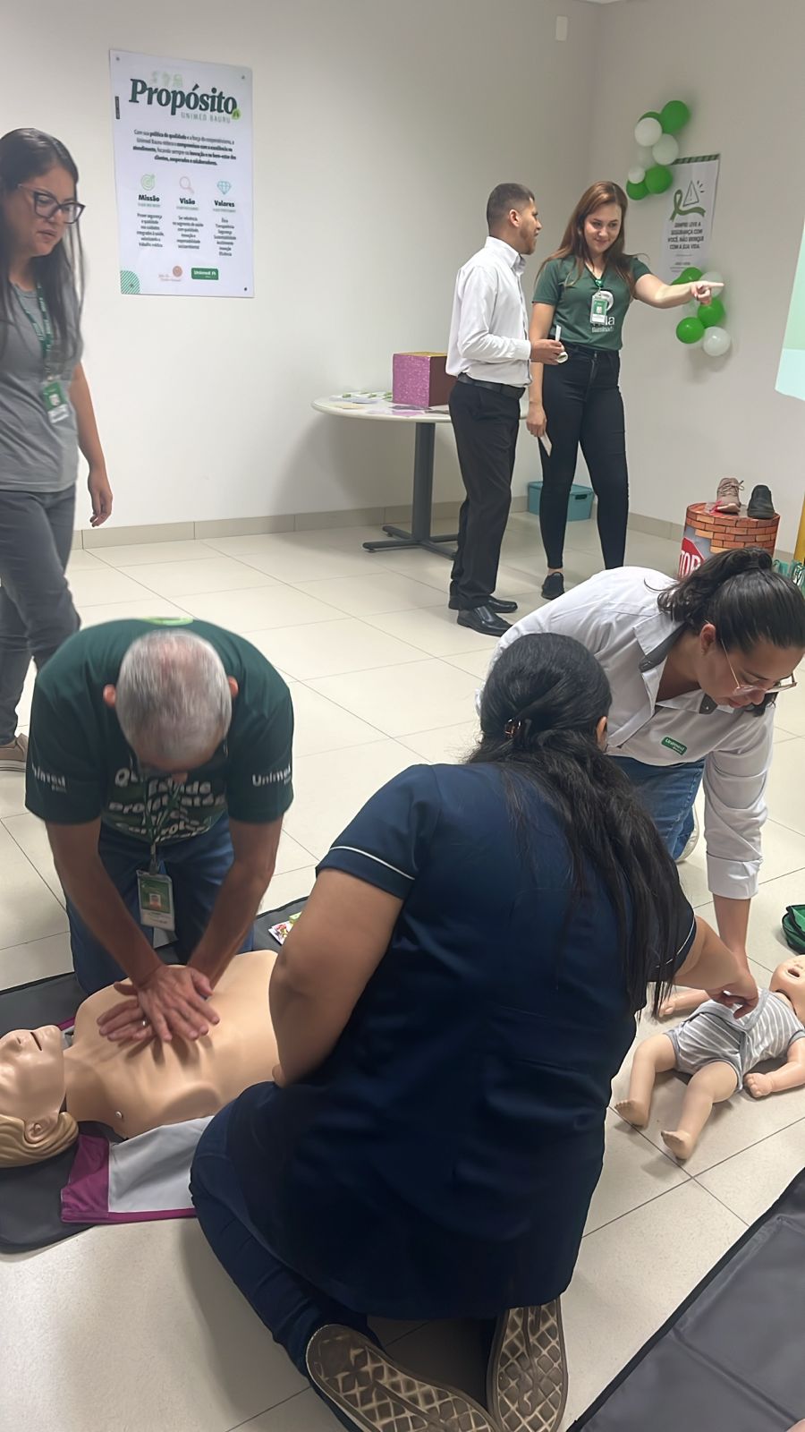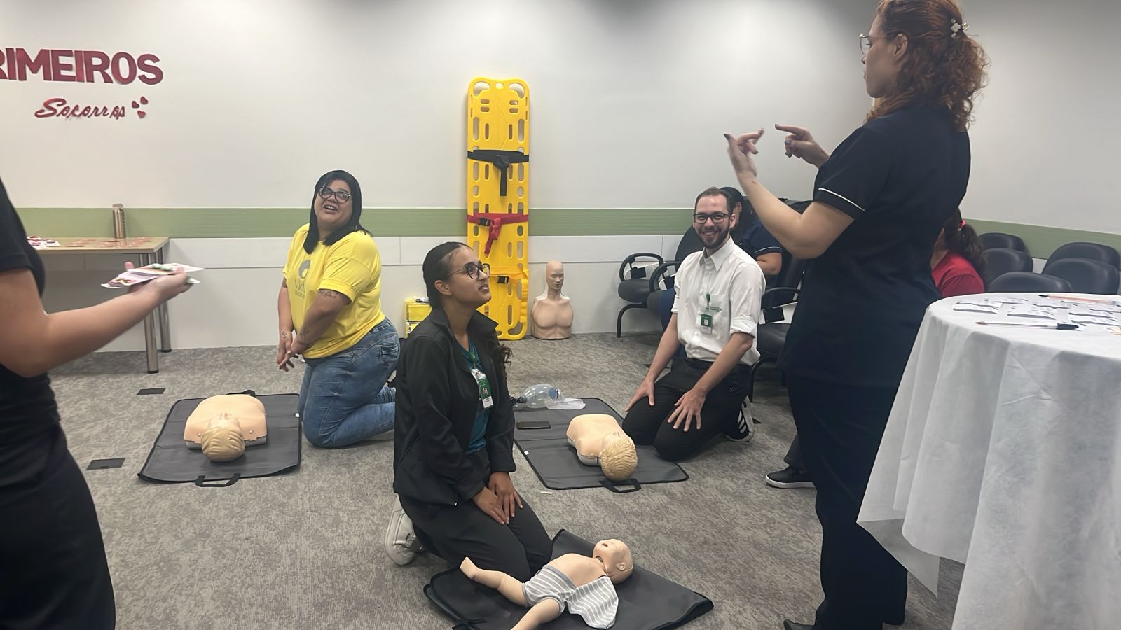 Com uma proposta participativa, os colaboradores foram convidados a vivenciar situações do cotidiano por meio de atividades como um quiz sobre Segurança do Trabalho e Primeiros Socorros, além de práticas demonstrativas de reanimação cardiopulmonar (RCP). As dinâmicas tiveram como objetivo estimular o aprendizado ativo, reforçando a importância da tomada de decisão rápida e segura em situações de risco.