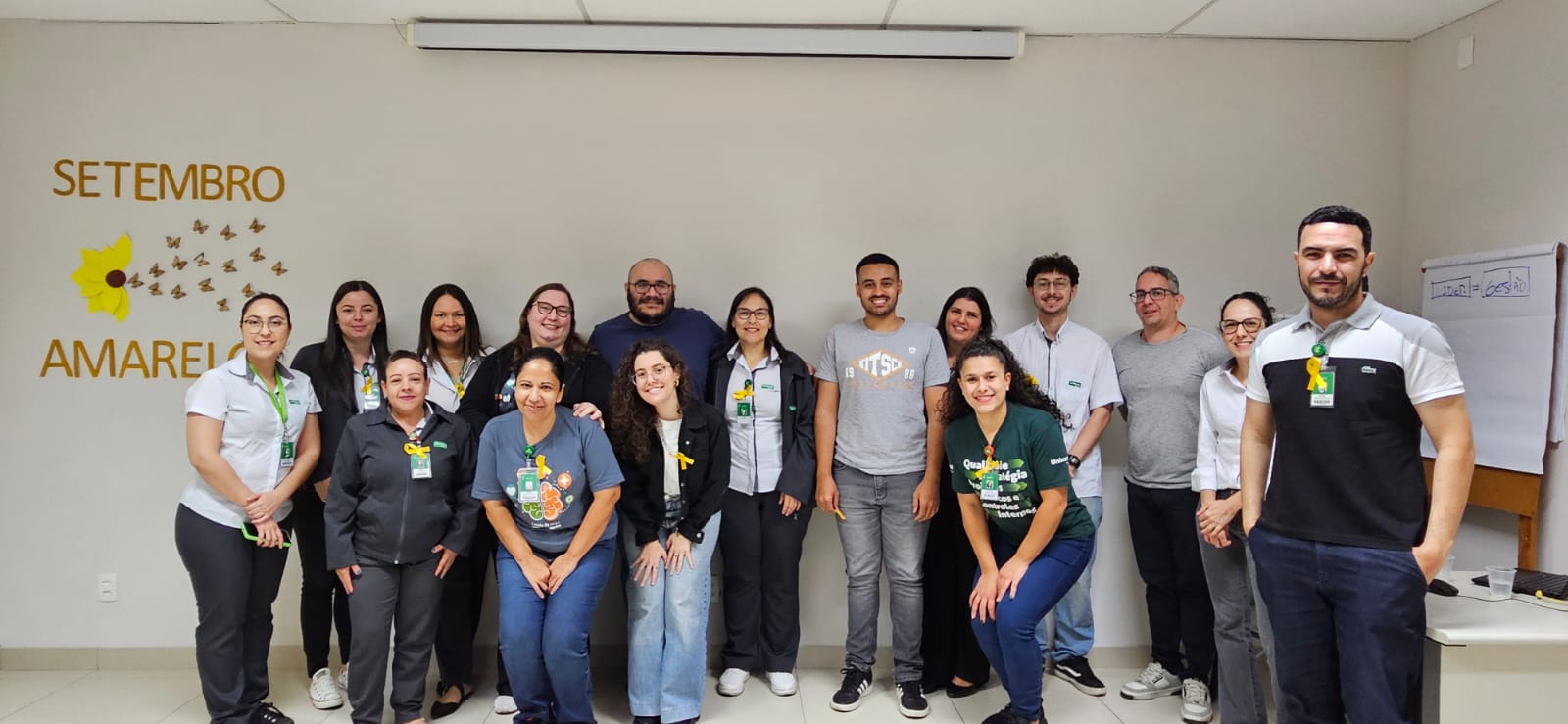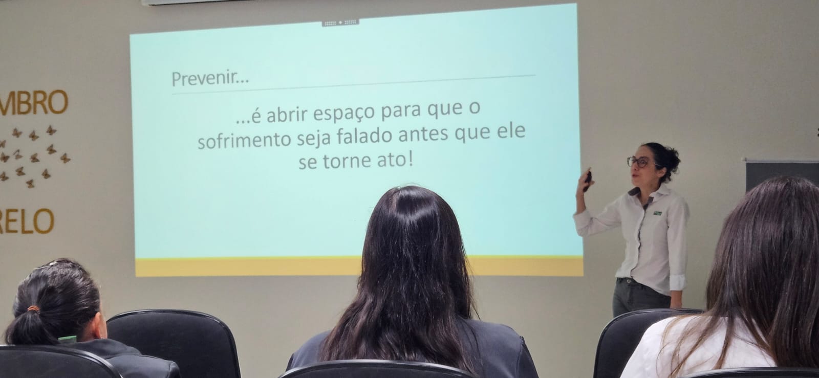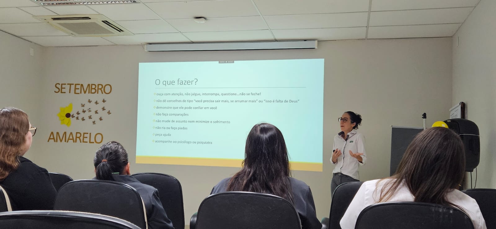 Na manhã do dia 11 de setembro, a Unimed Bauru realizou a palestra “Prevenir é cuidar: Sinais, escuta e vida”, ministrada pela psicóloga da Medicina Preventiva, Natália Mangili Silva. A ação integrou a programação da campanha Setembro Amarelo e ocorreu na sala de treinamentos da unidade administrativa, reunindo colaboradores para um momento de conscientização e diálogo sobre saúde emocional.
